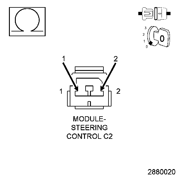 2. Disconnect the SCM C2 harness connector. NOTE: Before proceeding, thoroughly inspect the wiring harness and connectors between the HSW and the Steering Control Module. Look for chafed, pierced, pinched, or partially broken wires and broken, bent, pushed out, spread, corroded, or contaminated terminals.