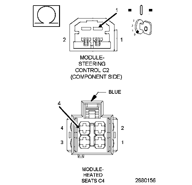1. Measure the resistance of the (C986) Heated Steering Wheel Return circuit between the SCM C1 harness connector and the HSM C4 harness connector.