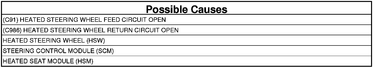 - Repair the open in the (C986) Heated Steering Wheel Return circuit.