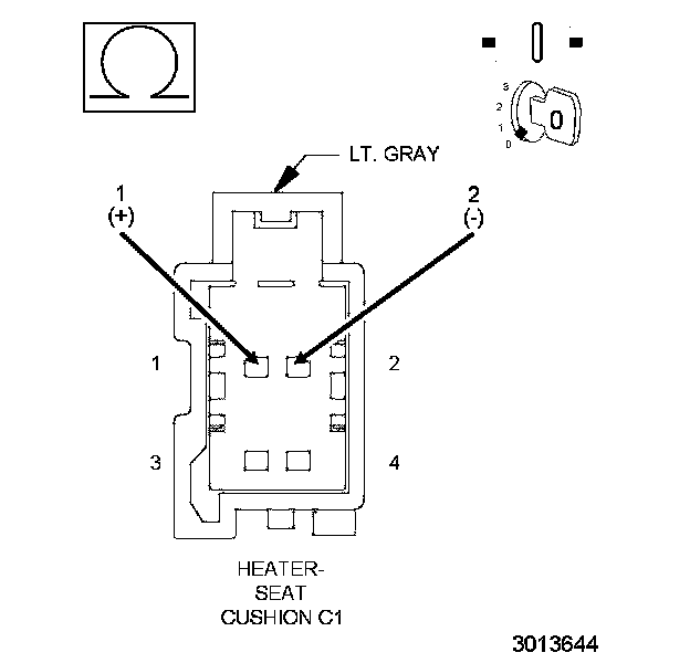 1. Measure the resistance between the (P187) Left Front Seat Heater Control circuit and the (Z912) Ground circuit at the Left Seat Cushion Heater harness connector (component side).