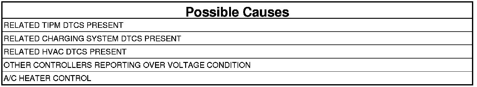 The A/C Heater Control constantly monitors battery and ignition voltage as well as battery voltage derived from BUS communication to ensure proper operation. If the voltage to the controller is out of range it could cause damage to the controller or its respective components. If the voltage of either circuit drops below or rises above a predetermined calibration a DTC will set.