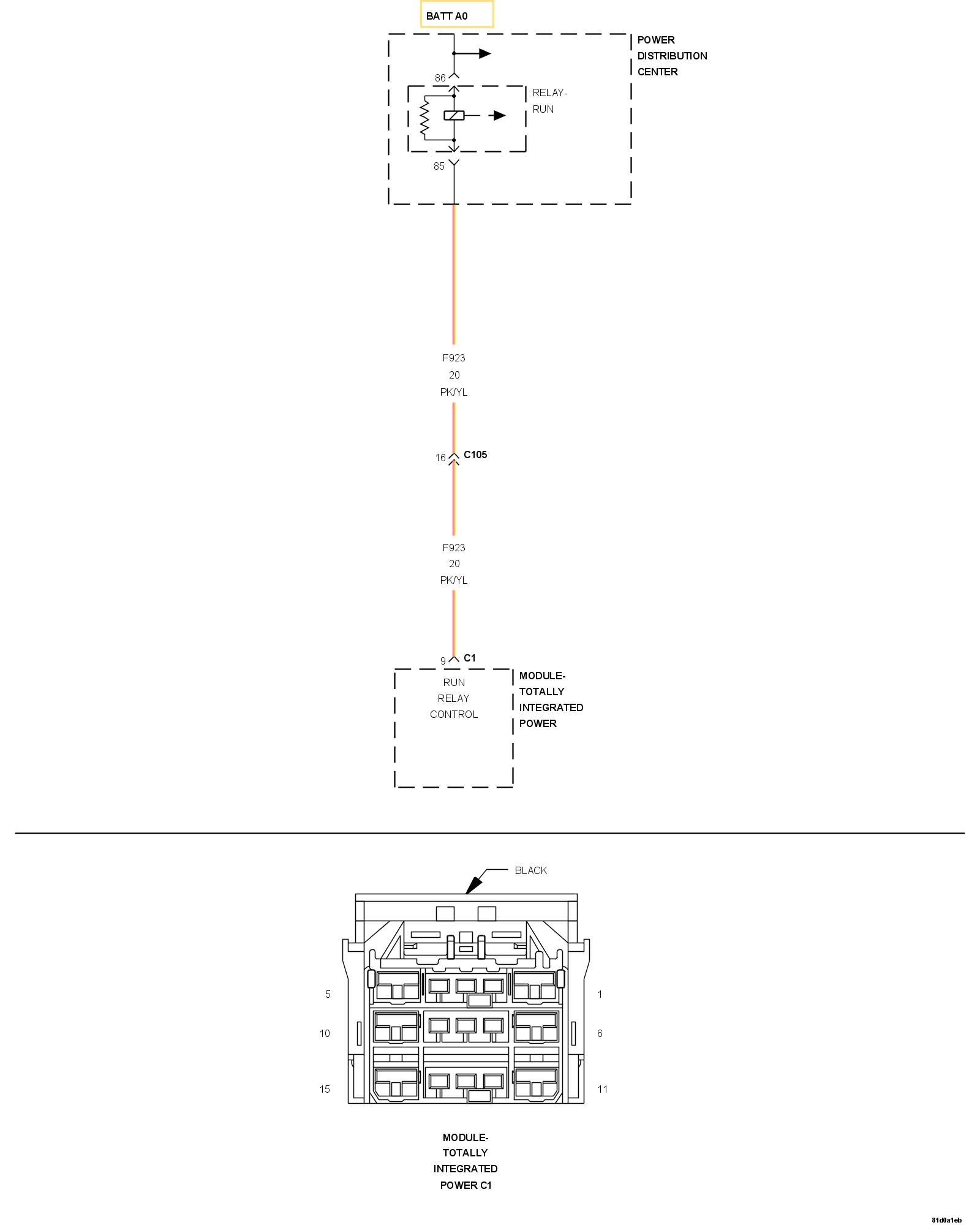 2. Measure the voltage of the (F923) Run Relay Control circuit at the TIPM C1 harness connector.