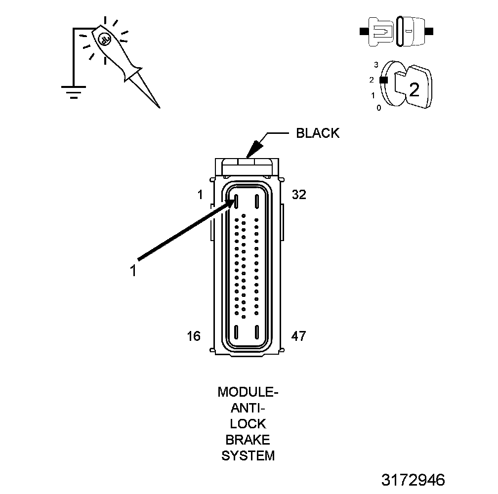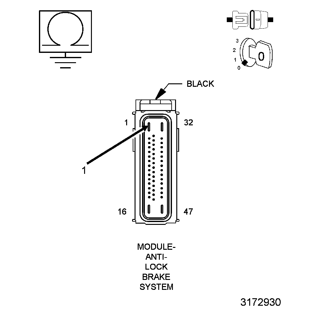 4. Measure the resistance between Ground and the (A107) Fused B+ circuit in the ABS Module harness connector.