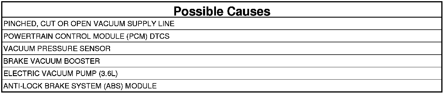 When the Anti-Lock Brake Module detects that the vacuum sensor signal does not make sense based on other vehicle conditions. No signal change, signal rapid change, unexpected change.