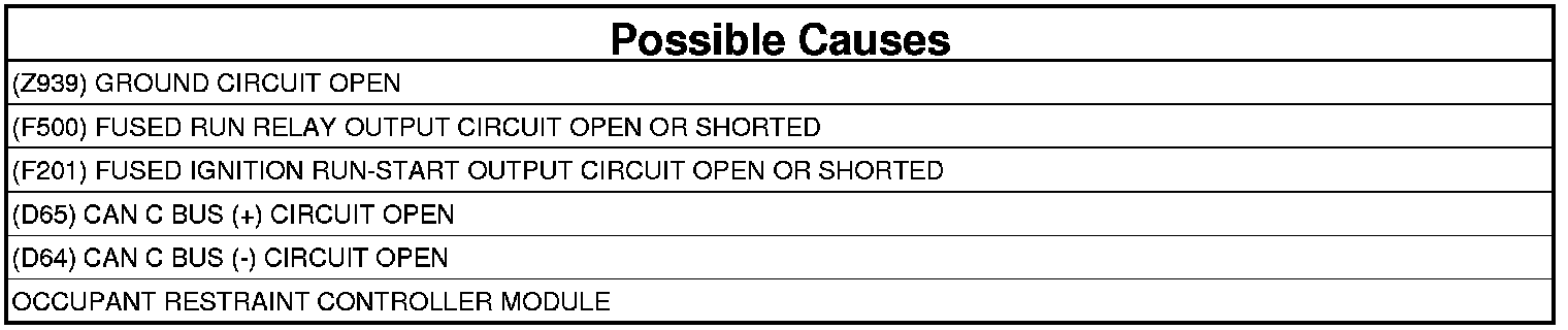 NO RESPONSE FROM ORC (OCCUPANT RESTRAINT CONTROLLER MODULE)