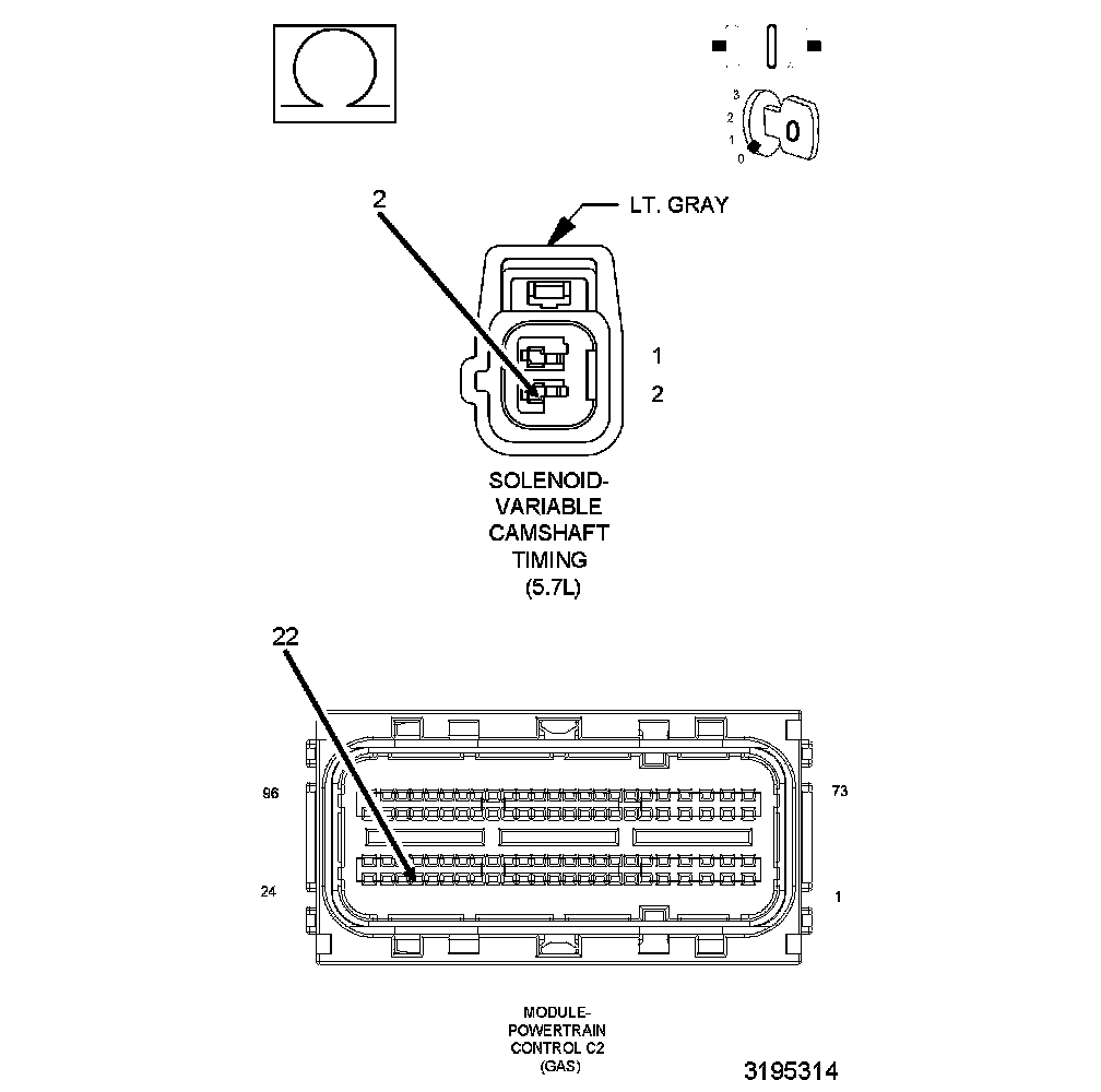 1. Using the wiring diagram/schematic as a guide, inspect the wiring and connectors between the VCT solenoid and the Powertrain Control Module (PCM).