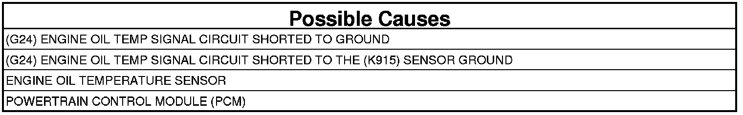 3. (G24) ENGINE OIL TEMP SIGNAL CIRCUIT SHORTED TO THE (K915) SENSOR GROUND CIRCUIT