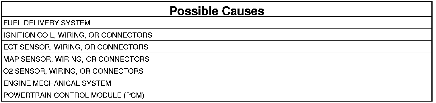 NOTE: Anything that affects the speed of the crankshaft can cause this DTC to set. When a misfire is detected, the PCM will shut down the injector control circuit for the misfiring cylinder. Misfire may occur and may not be caused by component failure. Any of the following conditions can cause a misfire.