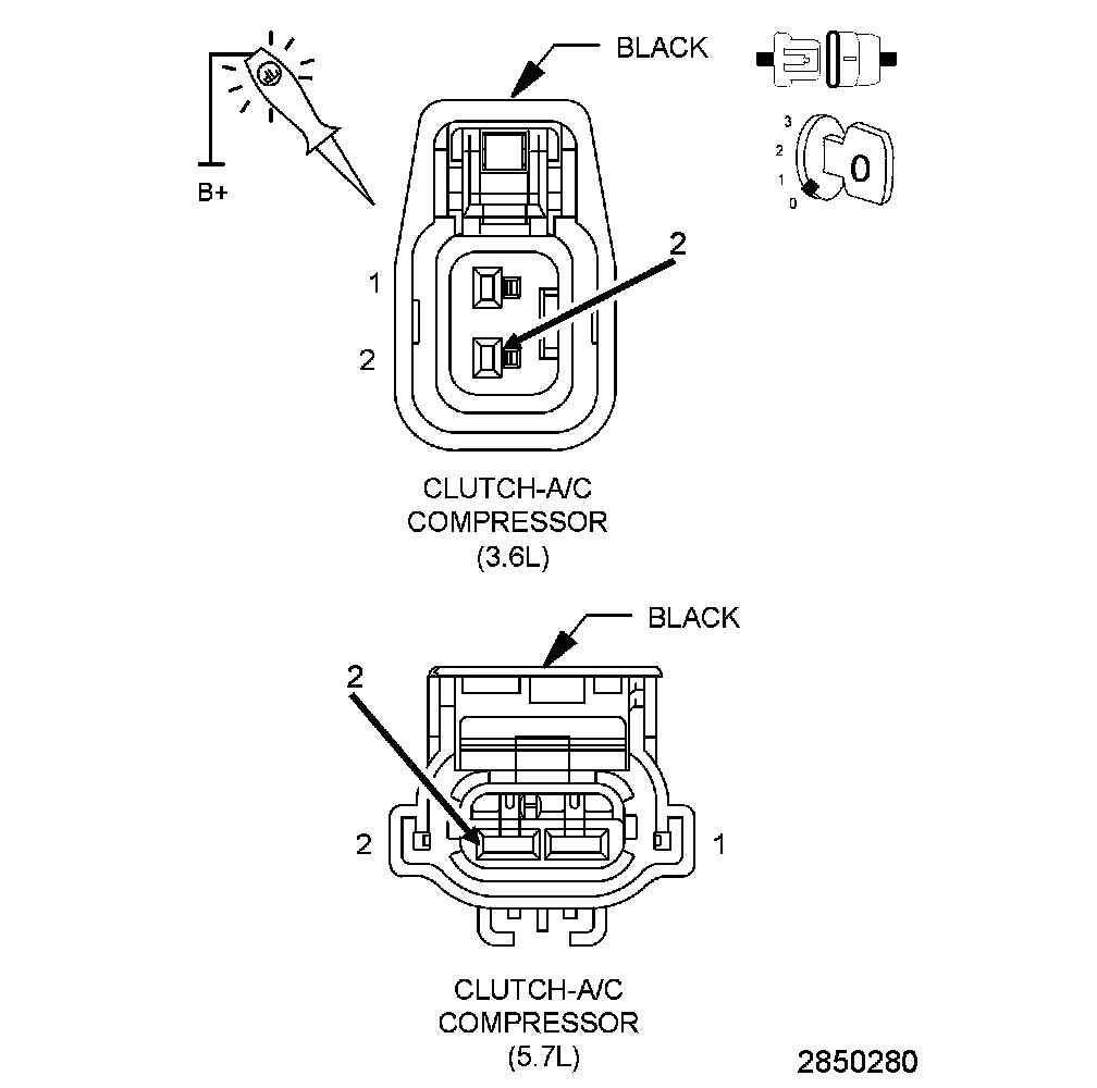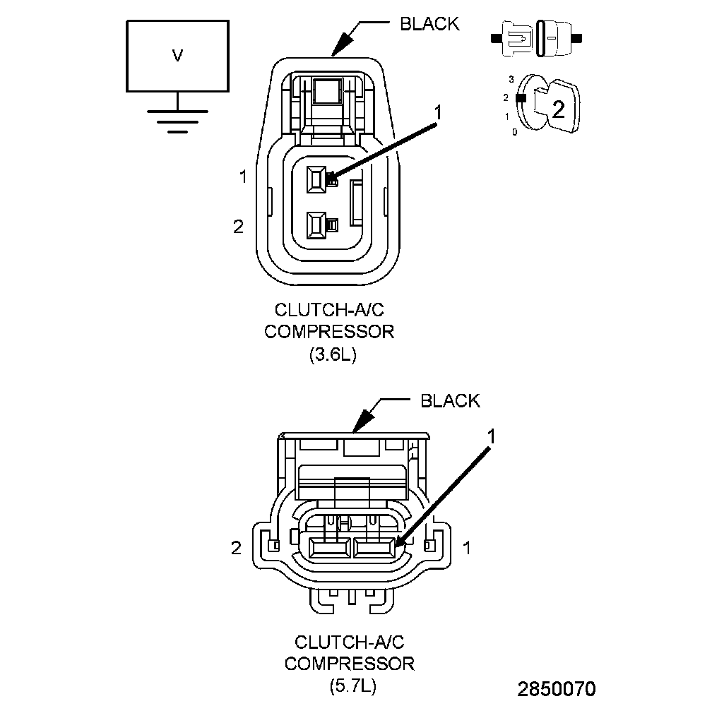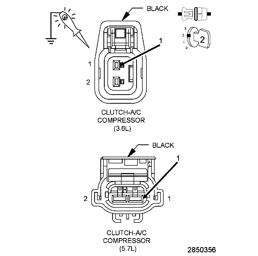 3. Using a 12-volt test light connected to 12-volts, check the (Z904) A/C Clutch ground circuit at the A/C Compressor Clutch harness connector.