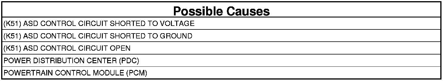 - Repair the short to ground in the (K51) ASD Control circuit.