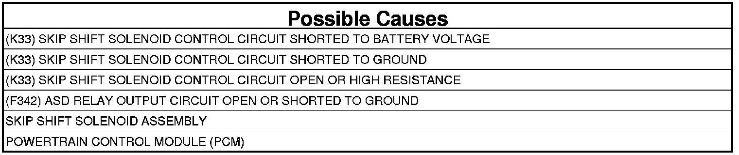 - Repair the short to battery voltage in the (K33) Skip Shift Solenoid Control circuit.