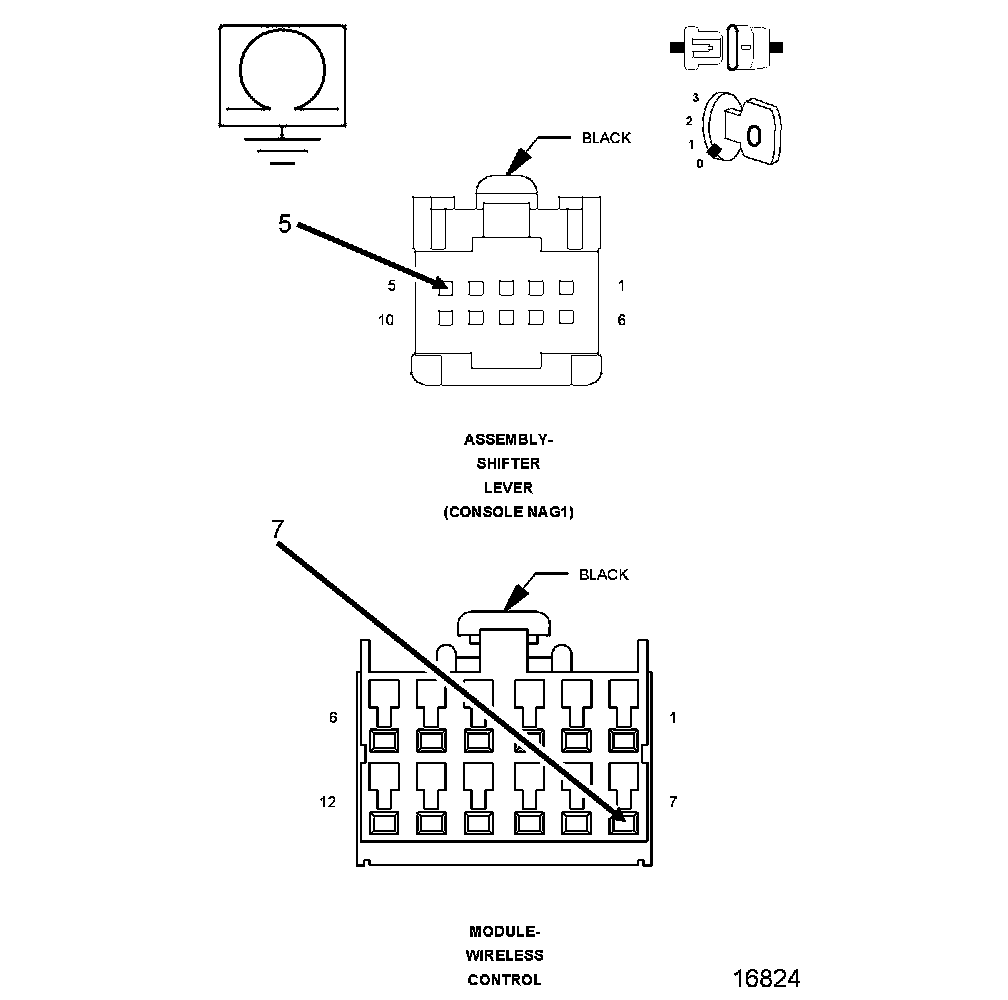 2. Measure the resistance of the (K321) BTSI Control circuit between the Shifter Lever Assembly harness connector and the WIN harness connector.