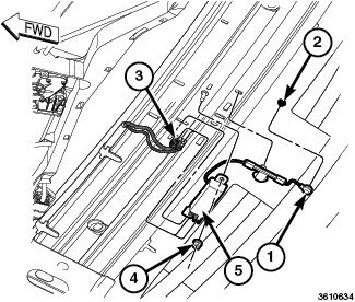 6. Remove the mounting fastener (4) and the antenna module (5).