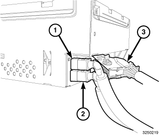 2. Disconnect the AM/FM Audio Antenna white connector (1) at the rear of the RADIO. .