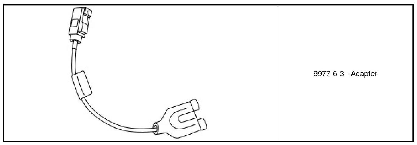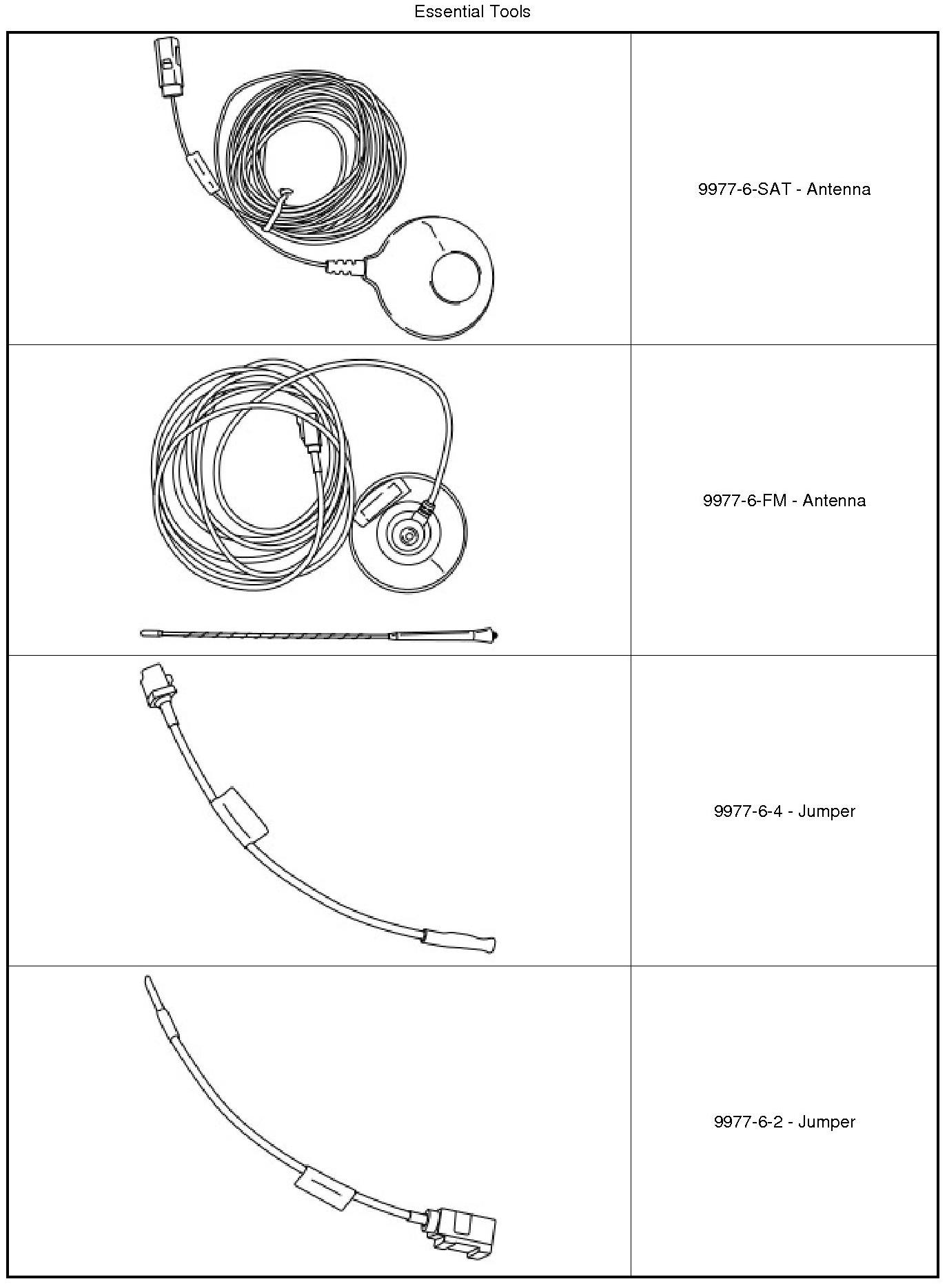 3. Connect the appropriate 50 Ohm test (9977-6-4) (1) or (9977-6-2) (1) to the Antenna cable (2) at the Antenna harness connector.