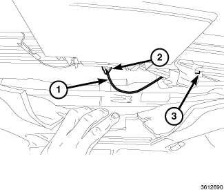 5. Disconnect the SDAR antenna yellow fakra connector (3) along the rear roof support.