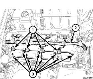6. Tighten the ignition coil retaining bolts (3) to 7 Nm (62 in. lbs.).