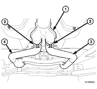 2. Remove the catalytic converter to muffler and resonator clamps (2).