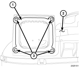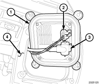 1. Position the HID ballast module (1) near the mounting hole on the underside of the front lamp unit housing (4).