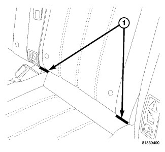 The lower anchors (1) are permanently mounted to the rear floor pan beneath the seat. These anchors are also constructed from a heavy-gauge steel wire loop welded to the floor pan. They are each accessed from the front of their respective seats, at each side where the seat back meets the seat cushion. These lower anchors cannot be adjusted or repaired and, if faulty or damaged, they must be replaced as a unit.