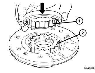 3. Lubricate pump gears and place in the pump housing. Insert pump gear (1)(Figure 2) so that the chamfer (arrow) points towards the pump housing.