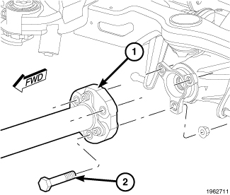 5. Install left rear axle-to-crossmember bolt (1) and tighten to 220 Nm (162 ft. lbs.).