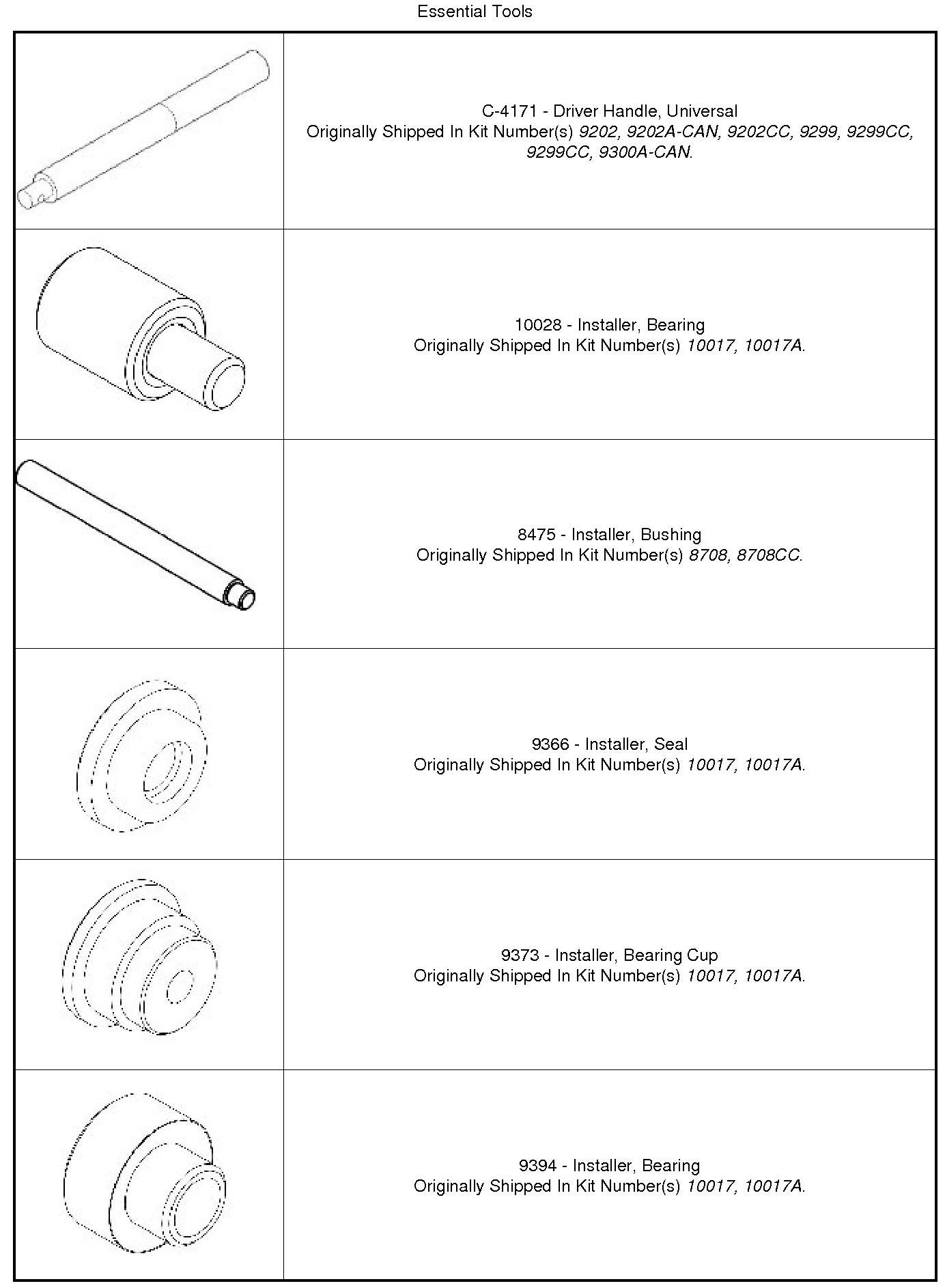 2. Install mainshaft bearing cup (1) with Installer (2) and Handle (3).