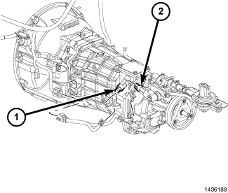 The skip shift solenoid (1) prevents the operator from shifting into second or third gear during part throttle operation. The solenoid is threaded into the left side of the transmission case.