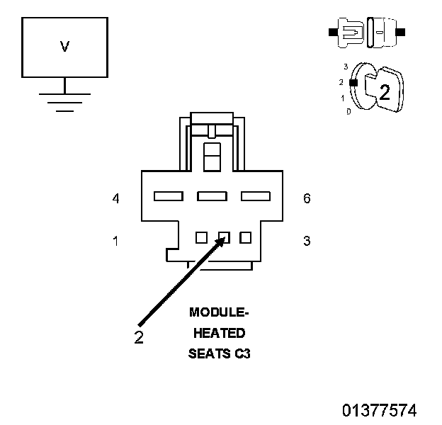 1. Measure the voltage of the (P672) Left Rear Heated Seat Temp Sense circuit between the HSM C3 harness connector and ground while adjusting the front seat.