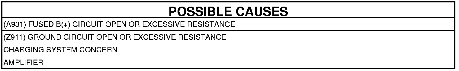 The Amplifier monitors the input voltage. This Diagnostic Trouble Code (DTC) is set when the input voltage is below 9 volts for greater than 15 seconds.