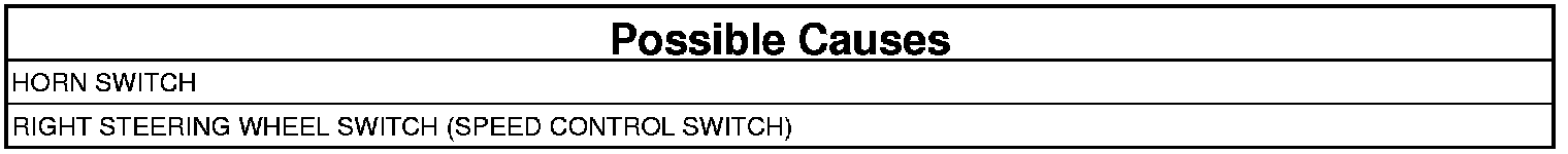 NOTE: Visually and physically inspect the wiring harness between the Horn Switch harness connector and the Right Steering Wheel Switch (Speed Control Switch) harness connector. Repair any damaged wires, connectors, and open/spread terminals. If harness is OK, proceed with test.