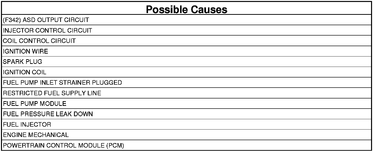 The misfire detection monitor, software strategy in the Powertrain Control Module (PCM), is designed to detect an engine misfire. The PCM uses the Crankshaft (CKP) and Camshaft (CMP) sensors to determine when an engine misfire event is occurring and determine individual misfire events by monitoring the crankshaft rotational speed. A misfire is nothing more than a lack of combustion, which can be caused by poor fuel quality or metering, low compression, lack of spark or unmetered air entering the engine. Other possible causes such as uncommanded Exhaust Gas Recirculation (EGR) flow can also cause a misfire. In the case of multiple cylinders misfiring, or the PCM not determining the specific cylinder misfiring, P0300 Multiple Cylinder Misfire will set.