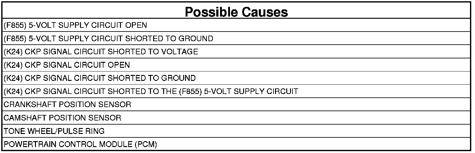 - Repair the short between the (F855) 5-volt Supply circuit and the (K24) CKP Signal circuit.