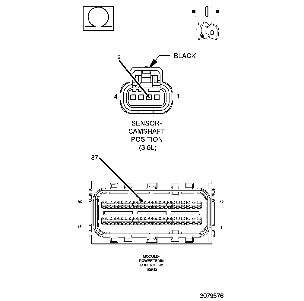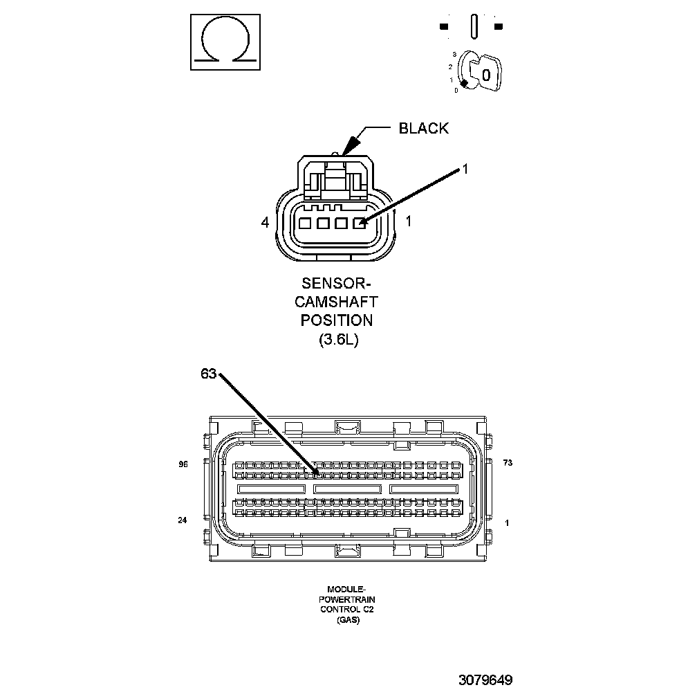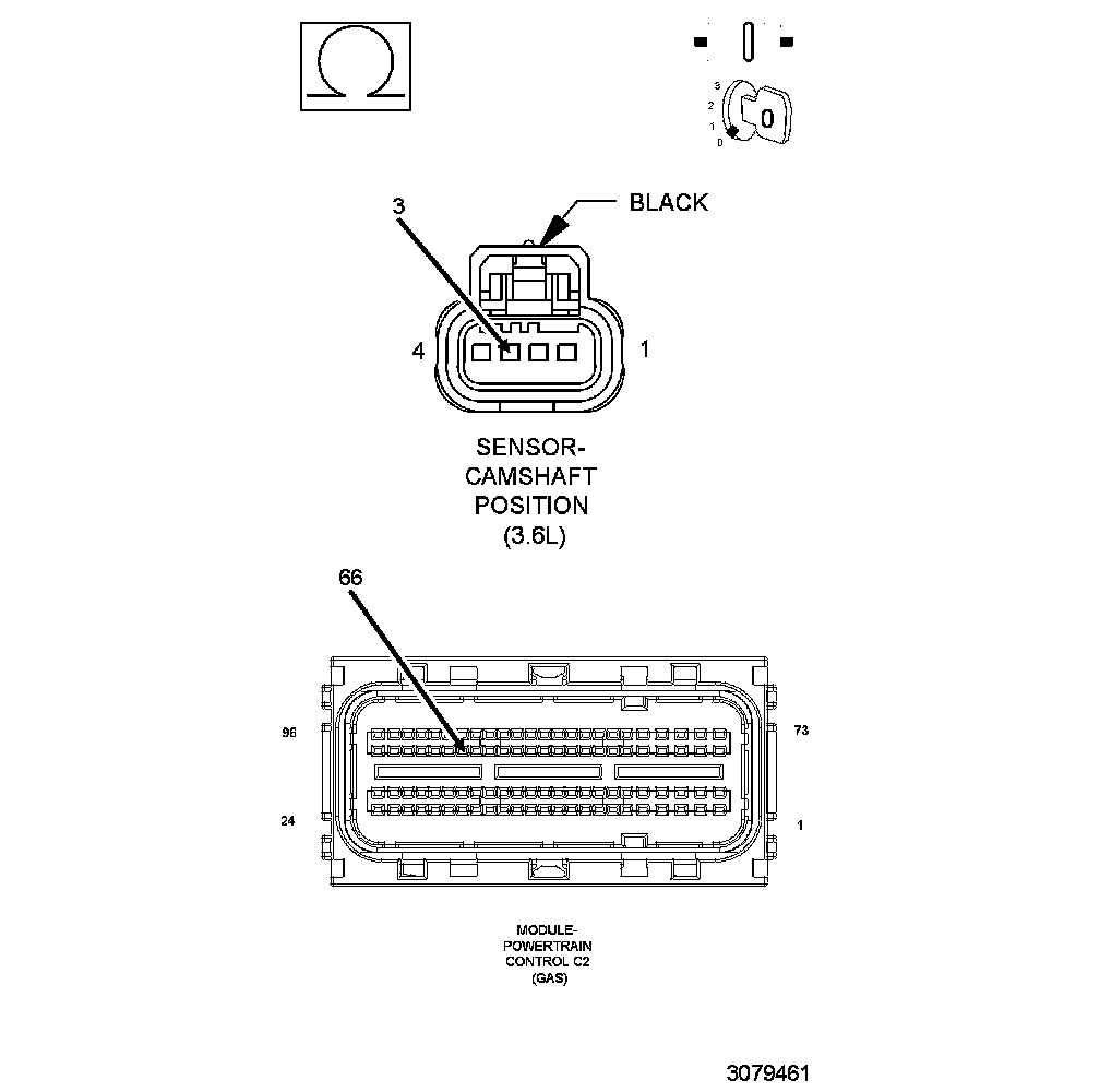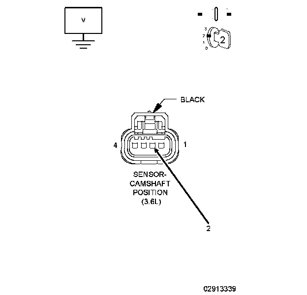 The 3.6L has four separate Camshafts that the Powertrain Control Module (PCM) requires positional information from. There are two Camshaft Position (CMP) Sensors on the 3.6L, each CMP Sensor consists of four circuits. The sensors are located on the top end of each valve cover, closest to the transmission side of the engine. The CMP Sensor is an integrated circuit sensing device and on the end of each Camshaft is a magnetic encoder that is programmed with a magnetic pattern. The PCM provides a 5-Volt supply and a sensor ground circuit to the CMP Sensor and the CMP Sensor provides two Camshaft positional signals, the intake and exhaust camshaft position, to the PCM. The sensor detects the magnetically encoded information, a series of magnetic peaks and valleys, from the encoder. As each Camshaft rotates, the magnetic encoded pattern passes by the CMP Sensor creating a changing magnetic field at the sensor face. The changing magnetic field is interpreted by the sensor electronics and a digital output, ON/OFF or HIGH/LOW pattern, is produced. The length of the pulse widths generated by the CMP varies in size based on the velocity of the Camshaft. The PCM decodes the digital pattern to identify the Camshaft position. The information from each individual Camshaft along with the Crankshaft information is used to control and sequence the Variable Valve Timing (VVT) system and fuel injection events.