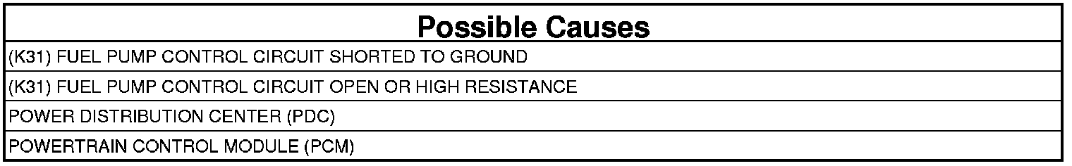 - Repair the short to ground in the (K31) Fuel Pump Control circuit.