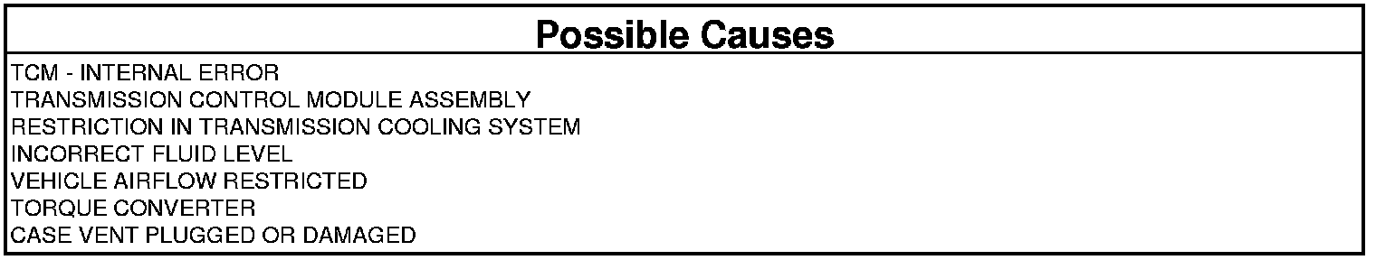 The purpose of the monitoring is to detect a fault in more than one of three temperature sensors. The transmission has three different temperature sensors. If any one of the three sensors fails, then the other two sensors are used as substitute with no impact on transmission control, operation or monitoring. Therefore a fault is only set on a multiple sensor failure. The three sensors consist of a discrete analog sensor outside the Transmission Control Module (TCM) which is located in the oil sump of the transmission (Oil Temperature Sensor) and two substrate (or chip) temperature sensors located in different positions on the TCM. As the TCM is embedded in the molded wiring harness leadframe, all temperatures have a strong correlation. Normally the oil temperature is used for the control of the transmission. Substrate temperatures are only used for over-temperature shutdown and rationality monitoring.