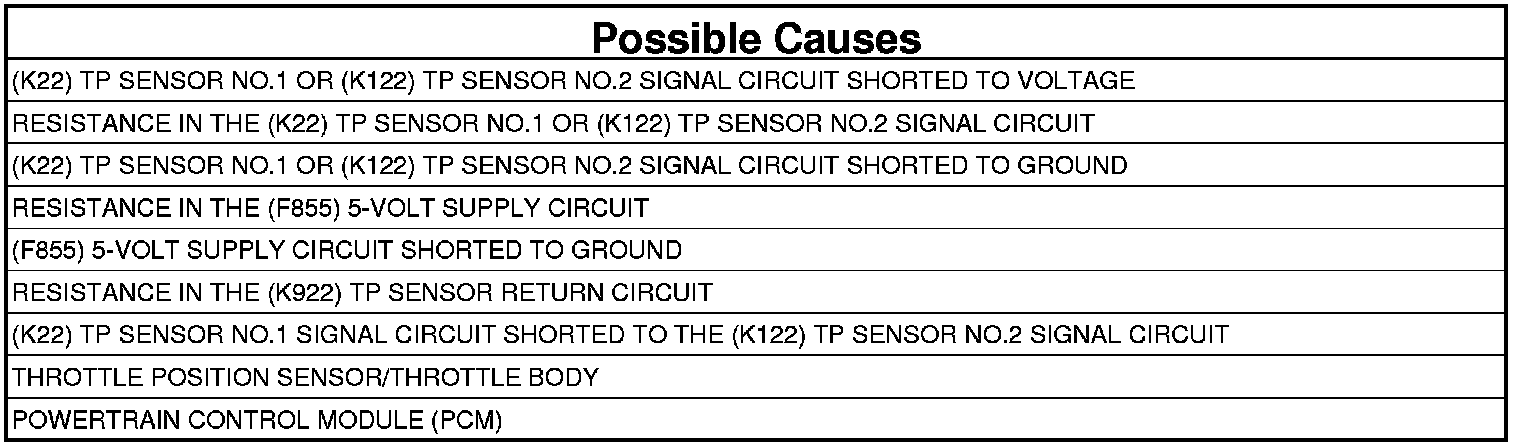 - Repair the excessive resistance in the (K122) TP Sensor No.2 Signal circuit.