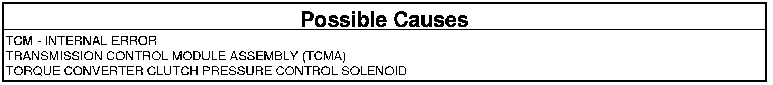 - Using the schematics as a guide, check the TCMA terminals for corrosion, damage or terminal push out. Pay particular attention to power and ground circuits. Check Service Information Tune-ups or Service Bulletins for possible causes that may apply. Remove the transmission oil pan and the TCMA. Valve Body - Removal. Inspect and clean the Torque Converter Clutch Pressure Control Solenoid terminals at the wiring harness leadframe for metallic contamination. Reinstall the TCMA. Valve Body - Installation. Connect the scan tool and clear the DTCs. Road test the vehicle and check for DTCs. If the DTC returns, replace and program the TCMA. Valve Body - Removal.