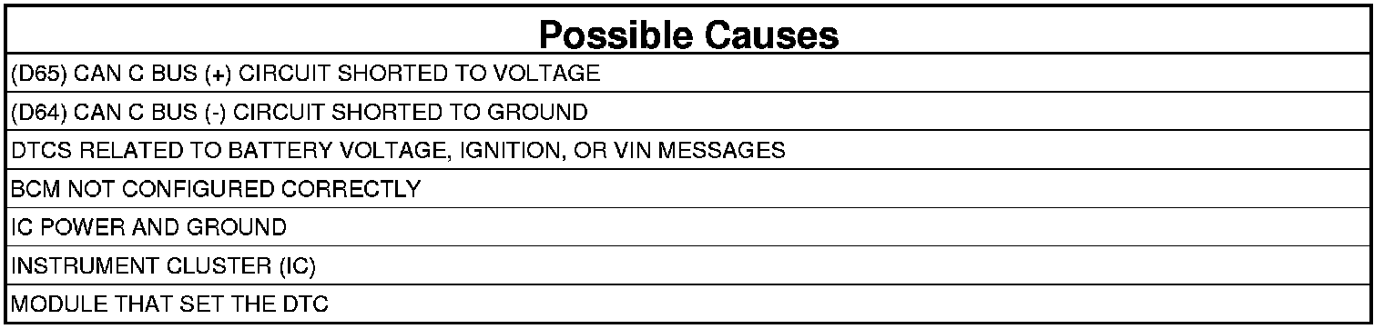 NOTE: Check for BCM configuration, CAN C hardware electrical, VIN Missing/Mismatch, battery or ignition related DTCs.