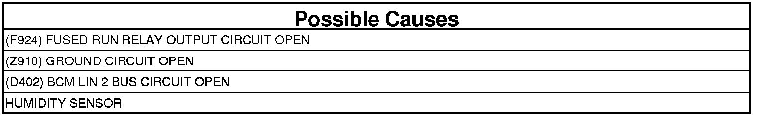 The Body Control Module (BCM) does not receive information from the Humidity Sensor.