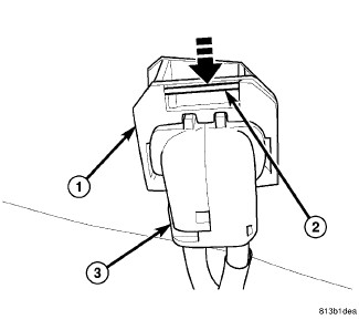 NOTE: To release sensor connector from body wiring harness connector (1) in following step, move retaining clip (2) as indicated here, then pull sensor connector (3) outward.