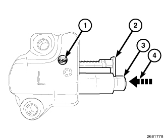 1. Using a suitable tool, such as an allen wrench (1), lift the pawl off of the rack.