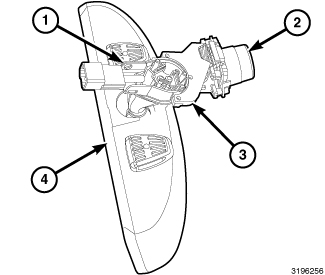SmartBeam(R) automatic high beam headlamp control is an available option on this vehicle when it is also equipped with the automatic headlamps, automatic wipers and the electrochromic inside rear view mirror (4) options. SmartBeam(R) enhances the headlamp system of the vehicle by assisting the driver with the task of turning the headlamp high beams ON and OFF according to surrounding traffic conditions. The only visible component of SmartBeam(R) is the camera pod (2) and the rectangular forward-facing clear lens. Because the SmartBeam(R) camera looks through the windshield, the system may not function properly if this area of the glass is covered with ice, dirt, haze or any other obstruction.
