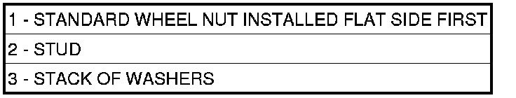 1. Install replacement wheel stud into flange of hub and bearing from rear (2). Install a stack of washers (3) (approximately 5, depending on thickness) over stud, then install a standard wheel mounting (lug) nut (1) on stud with flat side of nut against washers.