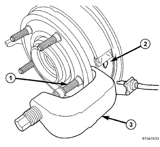 7. Install Remover (3), on hub and bearing flange and wheel stud (1).