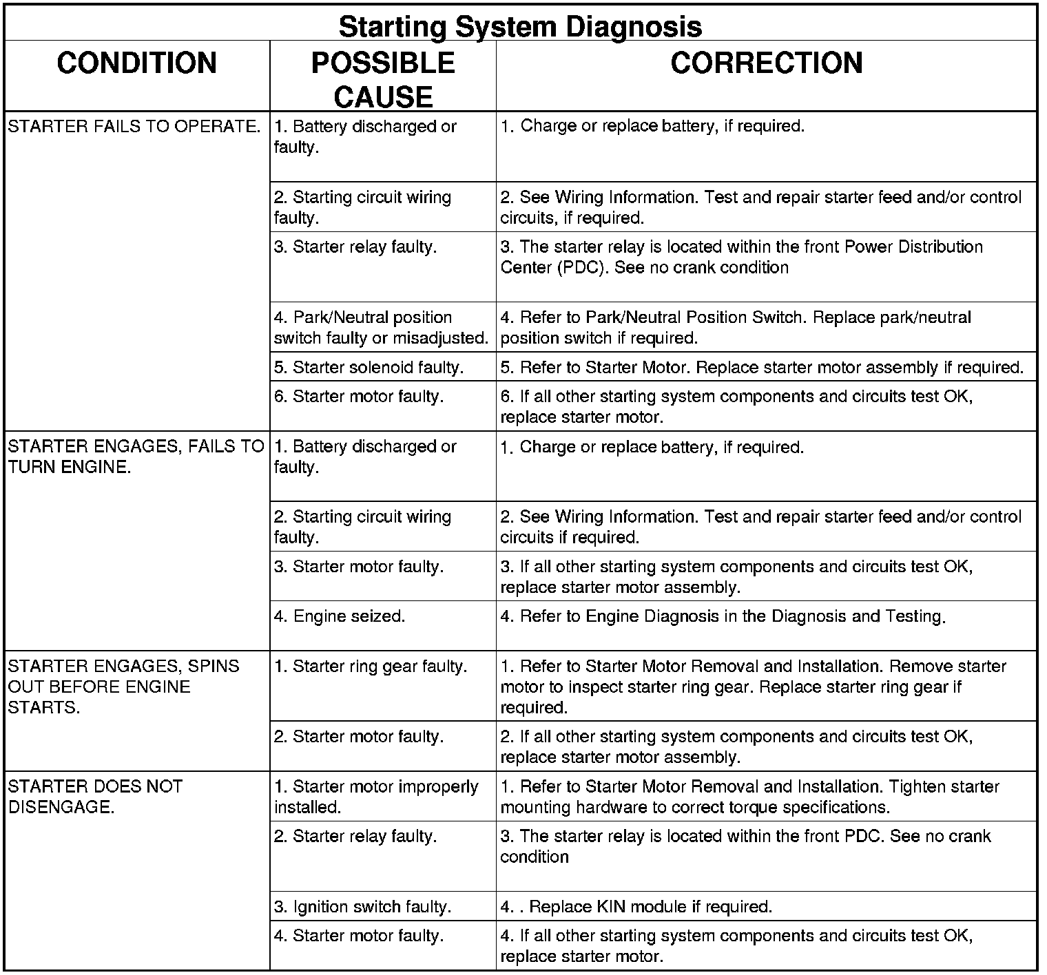 For complete starter wiring circuit diagrams, refer to 8, Wiring Diagrams. Before removing any unit from starting system for repair or diagnosis, perform the following inspections: