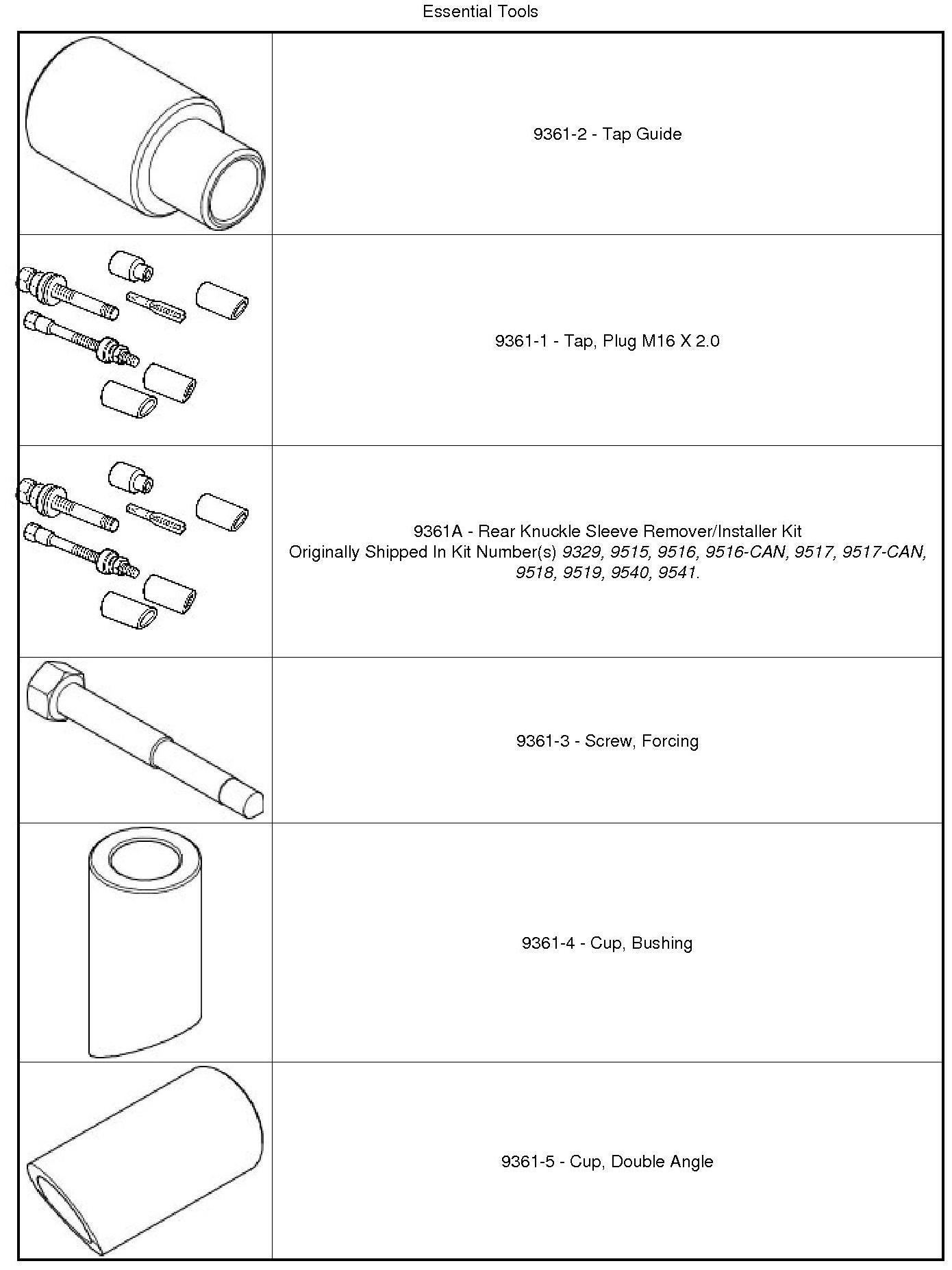 CAUTION: It important to use (9361-2)(2) when tapping sleeve in knuckle to help keep (9361-1)(1) straight during use or damage to Tap may occur.