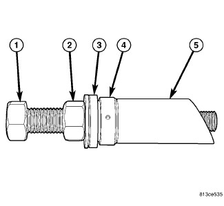 10. Remove bolt and nut (1) fastening spring link (4) to crossmember.