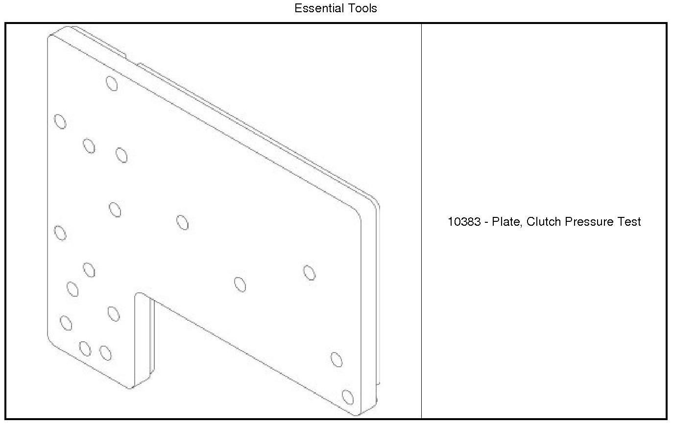 Remove the oil pan and the valve body. Install (10383) and tighten bolts to 6 Nm (50 in. lbs.). When testing is finished install valve body and tighten new bolts to 8 Nm (71 in. lbs.). Install the oil pan bolts and tighten to 10 Nm (89 in. lbs.). Fill the transmission Transmission Fill After Service