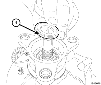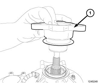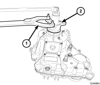23. Install Holder (1) onto the rear output flange (2). Tighten the rear output flange nut to 319 Nm (235 ft. lbs.).